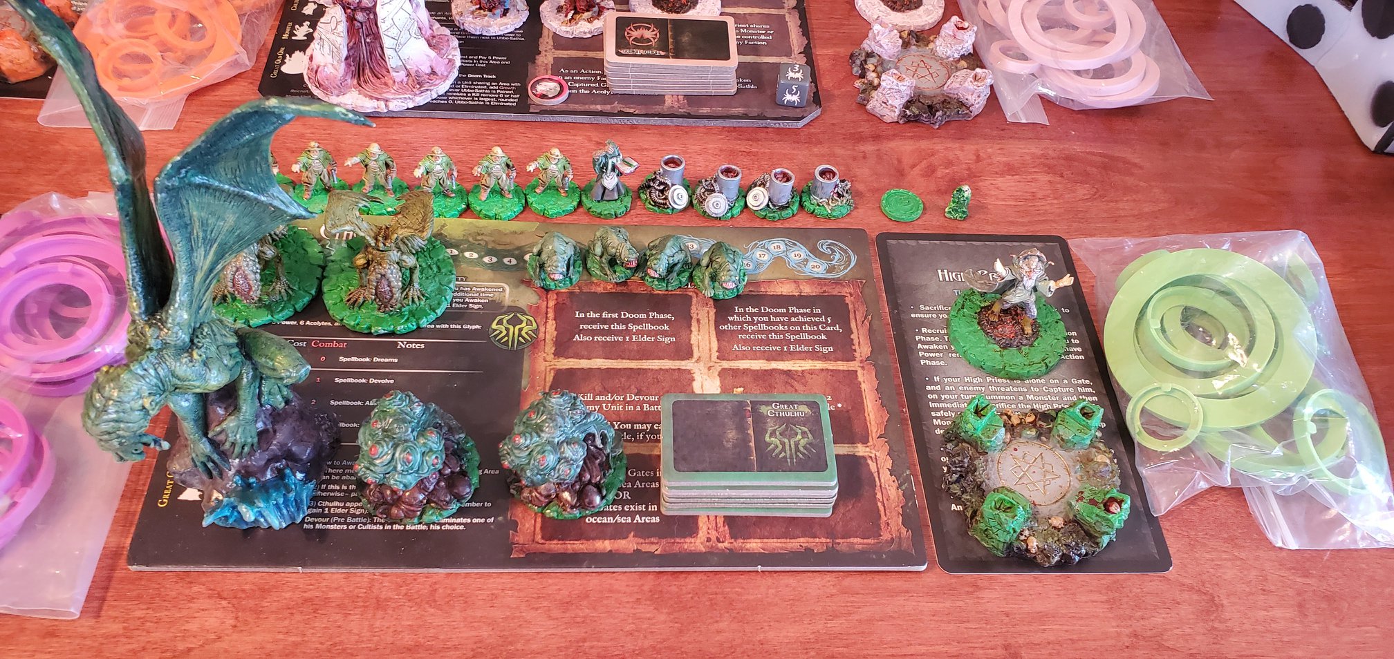 Playing with High Priests gives Cthulhu a lot of flexibility at the start of the game. You can bring it out, and then either a 2nd gate, or some monsters, and enter the 2nd turn with enough power to both Awaken Cthulhu and either move/attack, bring out more monsters, or Submerge off the board for an explosive Turn 3.